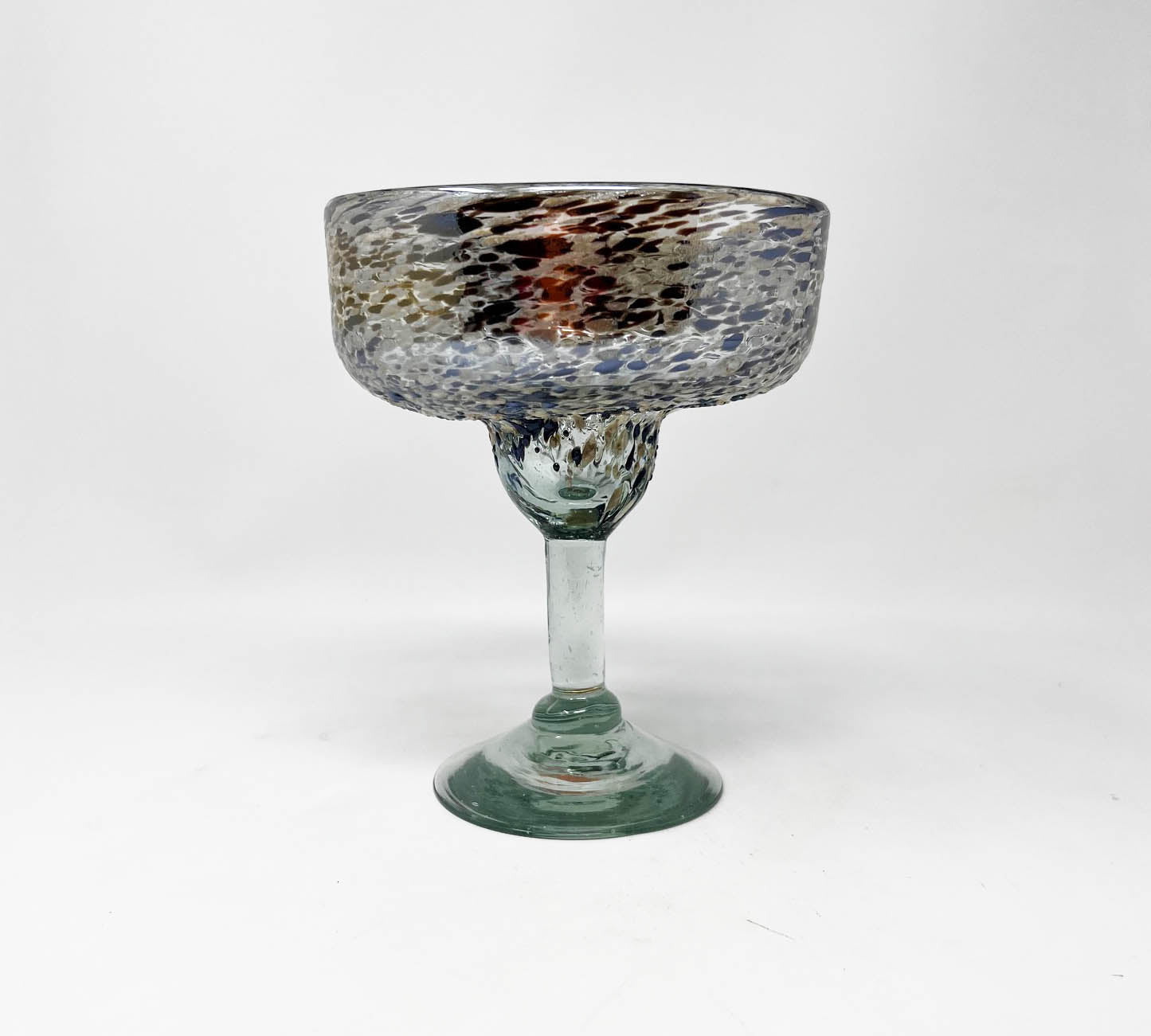 Hand blown margarita glasses. Dishwasher safe (top shelf). Lead free. Approx 7" tall. Hand blown. Holds approx 10 oz. Every one is slightly different! We will try our best to match up orders of more than one.